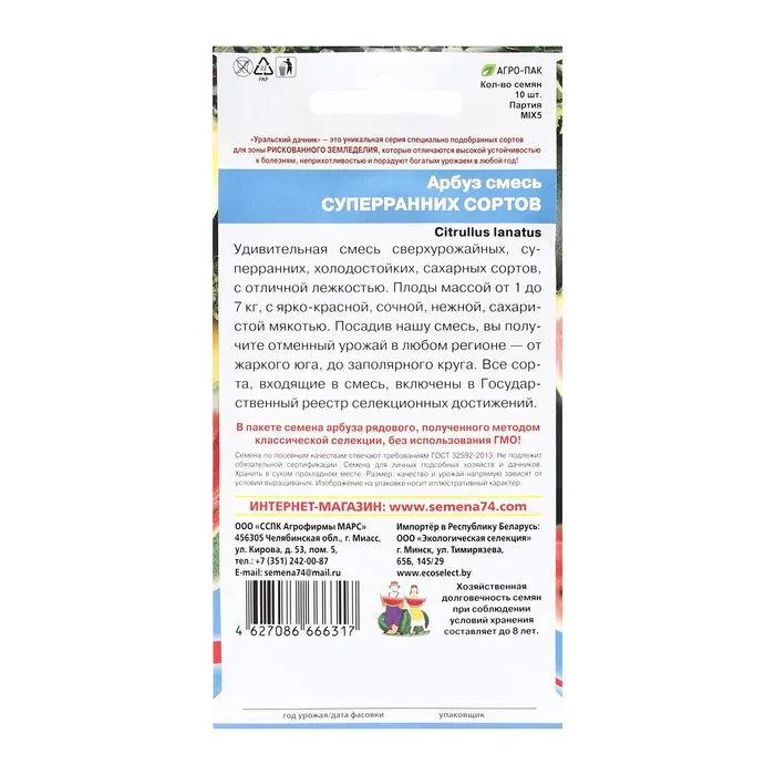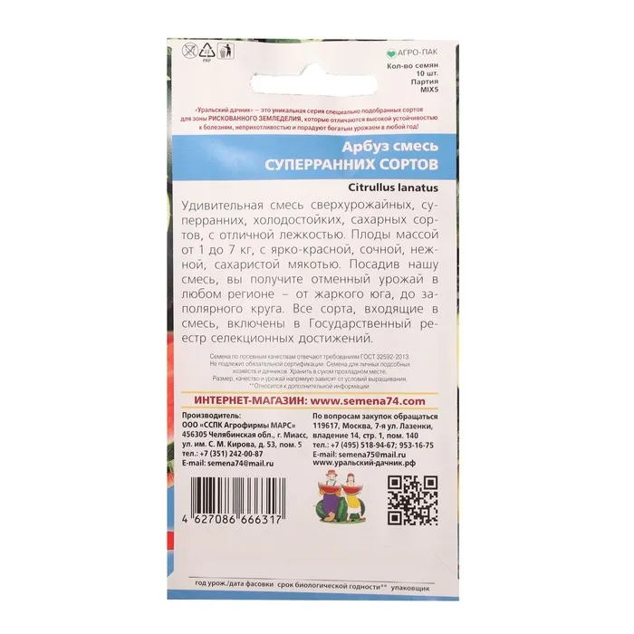 Семена Арбуз "Смесь Суперранних Сортов", 10 шт — Характеристики