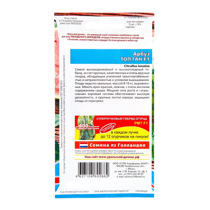 Семена Арбуз «Топ Ган», F1, 5 шт., «Уральский дачник» — Характеристики