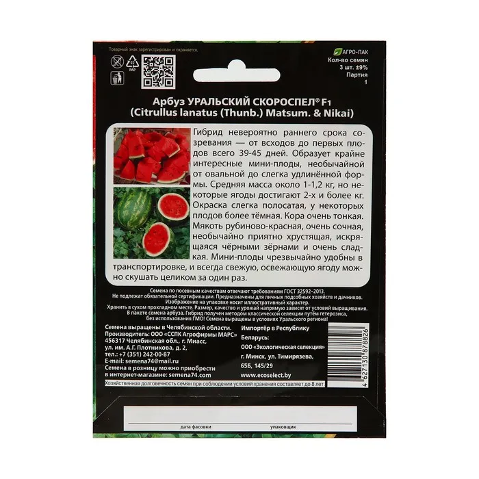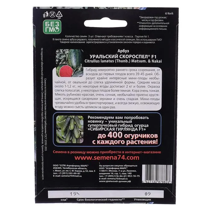 Семена Арбуз "Уральский Скороспел", F1, 3 шт — Характеристики