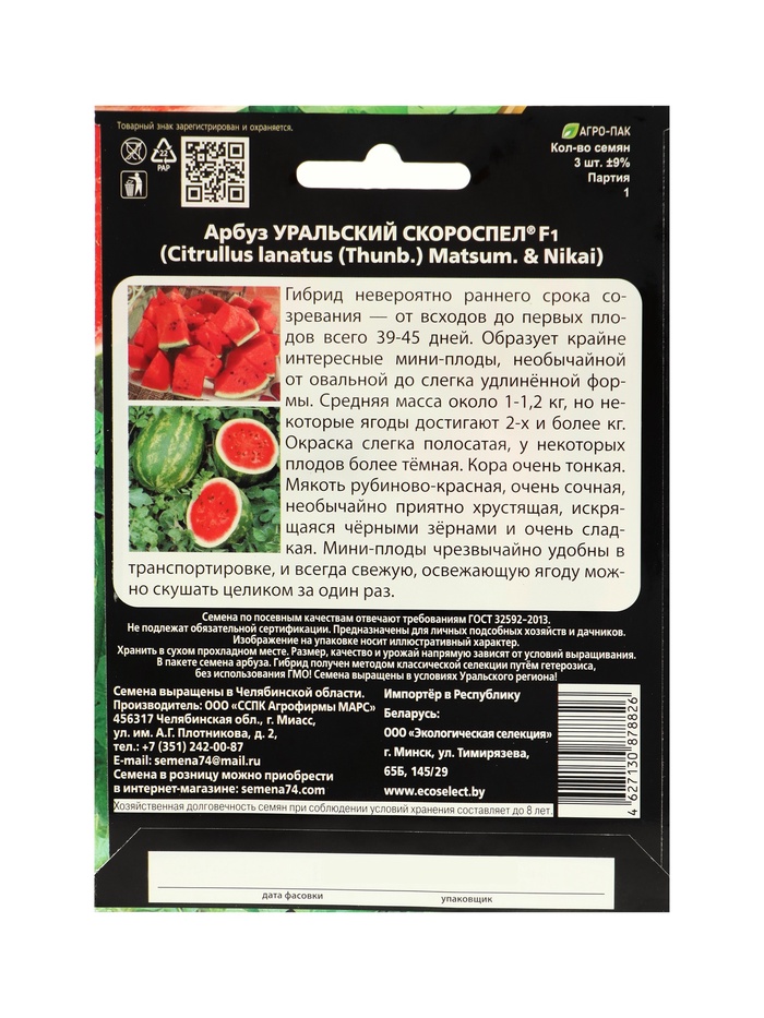 Семена Арбуз «Уральский Скороспел», F1, набор 5 шт., «Уральский дачник» — Характеристики
