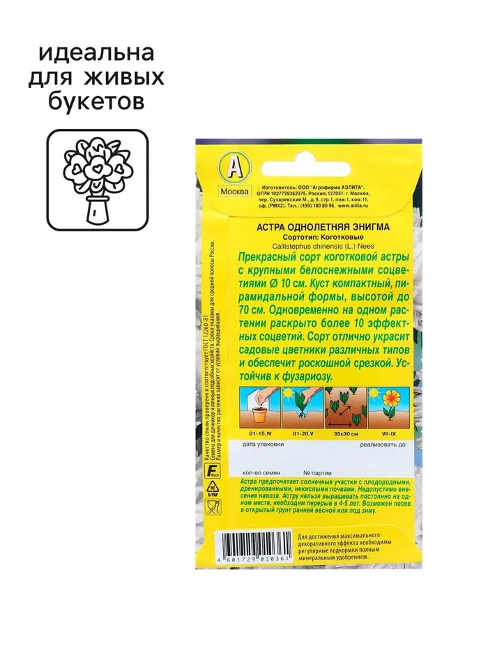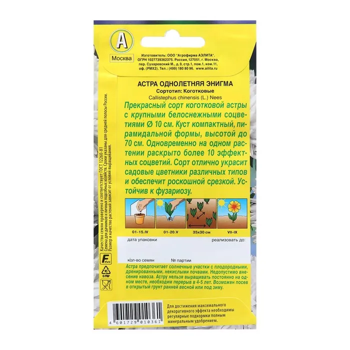 "Прекрасный сорт среднего срока цветения. Принадлежит к сравнительно новому сортотипу коготковых астр. Образует узкий пирамидальный куст-букет высотой до 80 см. Одновременно на кусте раскрыты более 10 оригинальных густомахровых соцветий диаметром до 10 см, с красиво уложенными лепестками. Сорт универсального назначения– отлично украшает цветники и дает ценную срезку. Устойчив к фузариозу.