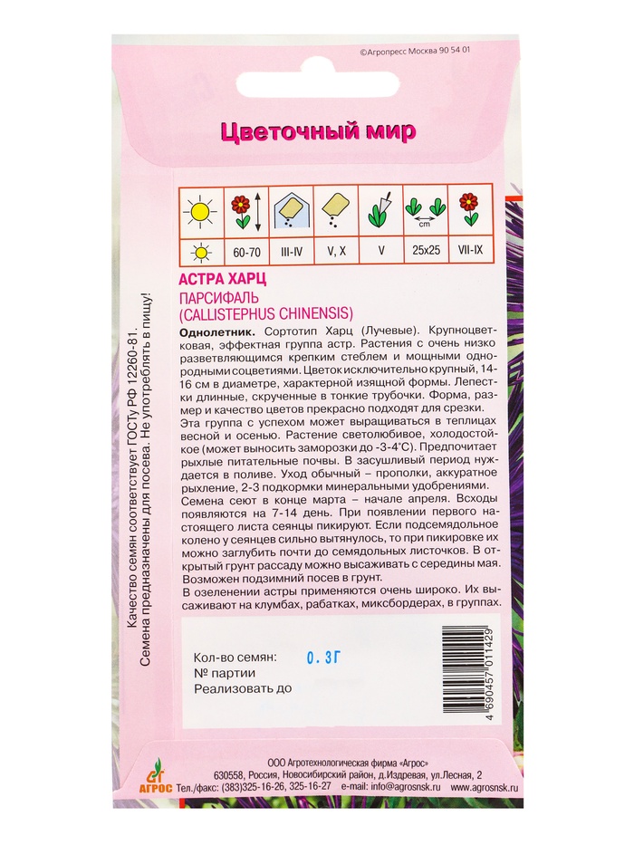 Семена Астра Харц «Парсифаль», 0.3 г, «Агросс» — Характеристики