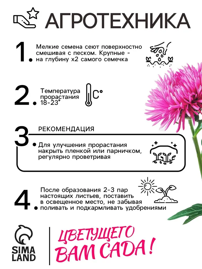 Астры нельзя постоянно выращивать на одном месте, их возвращают на прежнее место не ранее, чем через 4-5 лет. Недопустимо внесение навоза. Астра – культура холодостойкая, хорошо переносит заморозки до -4 °С. Возможен посев семян в открытый грунт ранней весной или под зиму.