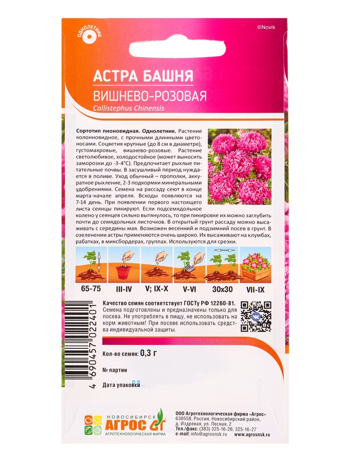 Семена Астра «Вишнево-Розовая Башня», 0.3 г, «Агросс» — Характеристики