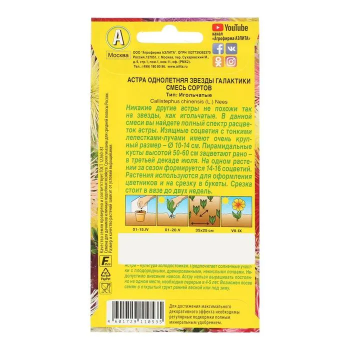 Семена Астра Звезды галактики, смесь окрасок 0,2 гр. — Характеристики