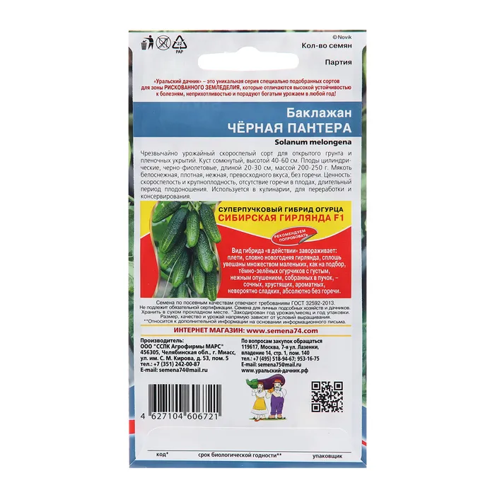 Чрезвычайно урожайный скороспелый сорт для открытого грунта и пленочных укрытий. Куст сомкнутый, высотой 40-60 см. Плоды цилиндрические, чёрно-фиолетовые, длиной 20-30 см., массой 200-250 гр. Мякоть белоснежная, плотная, нежная, превосходного вкуса, без горечи.