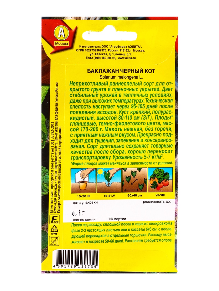 Семена Баклажан «Чёрный кот», 0.1 г, «Аэлита» — Характеристики