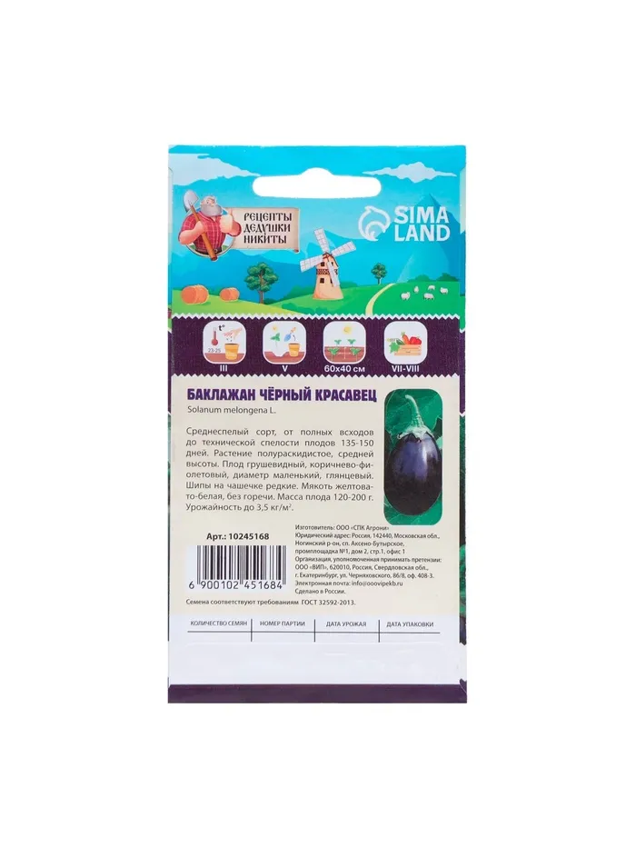 Семена Баклажана "Чёрный красавец", 0,3 г