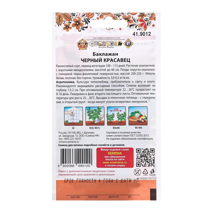 Популярный среднеспелый сорт. Растение компактное, высотой 60-70 см, плоды глянцевые, грушевидные, темно-фиолетового цвета, длиной 10-12 см, массой до 220 г. Мякоть белая, плотная, без горечи, отличного вкуса.