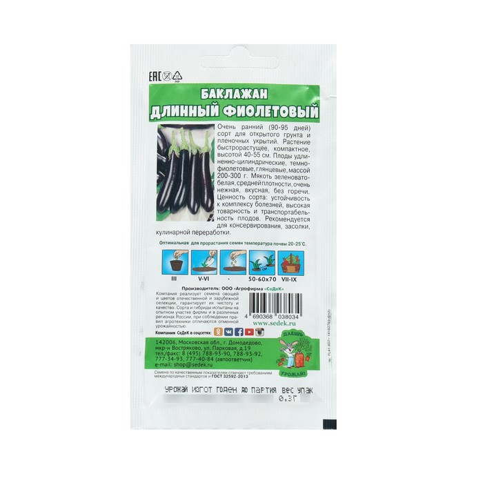 Очень ранний (90-95 дней) сорт для открытого грунта и пленочных укрытий. Растение быстрорастущее, компактное, высотой 40-55 см. Плоды удлиненно-цилиндрические, темно-фиолетовые, глянцевые, массой 200-300 г. Мякоть зеленовато-белая, средней плотности, очень нежная, вкусная, без горечи. Ценность сорта: устойчивость к комплексу болезней, высокая товарность и транспортабельность плодов. Рекомендуется для консервирования, засолки, кулинарной переработки.
