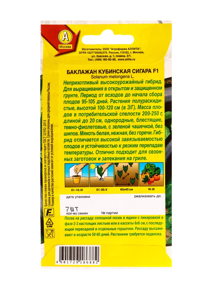 Семена Баклажан «Кубинская сигара», F1, 7 шт., «Аэлита» — Характеристики