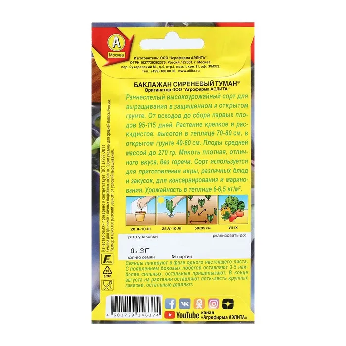 Раннеспелый высокоурожайный сорт для выращивания в защищенном и открытом грунте. От всходов до сбора первых плодов 95-115 дней. Растение крепкое и раскидистое, высотой в те-плице 70-80 см, в открытом грунте 40-60 см. Плоды средней массой до 270 гр. Мякоть плотная, отличного вкуса, без горечи. Сорт используется для приготовления икры, различных блюд и закусок, для консервирования и маринования. Урожайность в теплице 6-6,5 кг/м2.