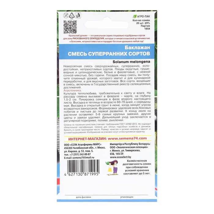 Семена Баклажан "Смесь Суперранних Сортов", 20 шт — Характеристики