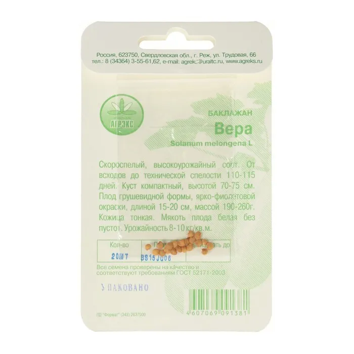 Скороспелый сорт с крупными плодами. Для выращивания в открытом грунте. Период от всходов до технической спелости 100-120 дней. Куст компактный, высотой 75-105 см. Плоды грушевидной формы, длиной 15-20 см, массой 125-200 г. Окраска в технической спелости ярко-фиолетовая, с характерной светлой полосой под чашечкой. Кожица тонкая. Мякоть плода белая, без пустот. Урожайность 8-10 кг/м2.