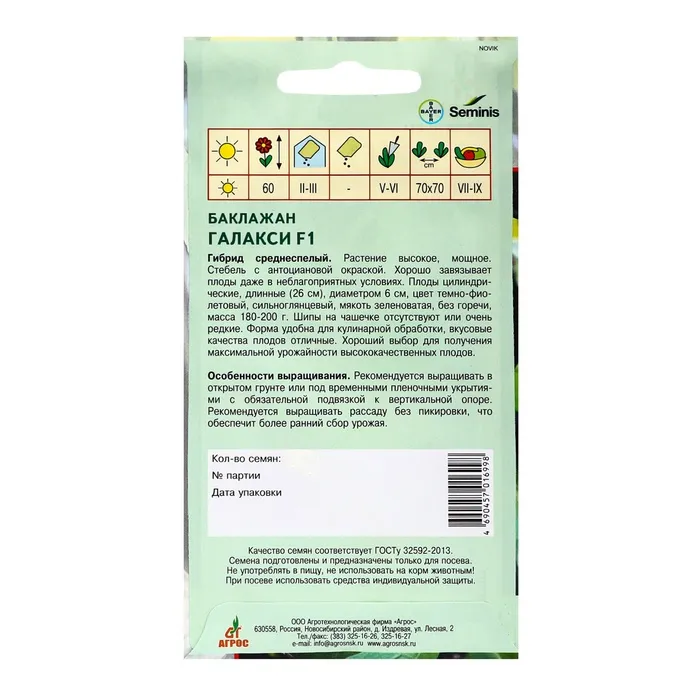 Семена Баклажан"Галакси"F1 5шт* Seminis — Характеристики
