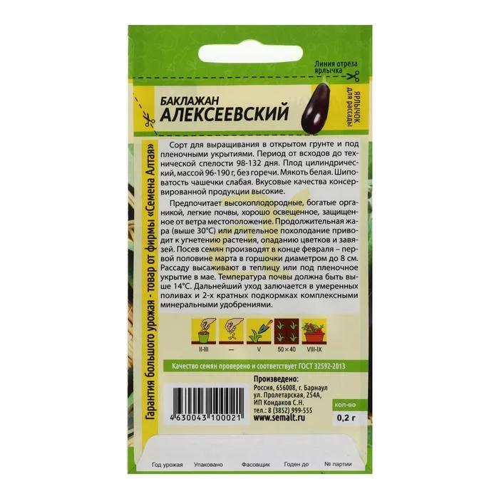 Сорт для выращивания в открытом грунте и под пленочными укрытиями. Период от всходов до технической спелости 98-132 дня. Плод цилиндрический, массой 96-190 г. без горечи. Мякоть белая. Шиповатость чашечки слабая. Вкусовые качества консервированной продукции высокие. Предпочитает высокоплодородные, богатые органикой, легкие почвы, хорошо освещенное, защищенное от ветра местоположение. Продолжительная жара (выше 30°С) или длительное похолодание приводит к угнетению растения, опаданию цветков и завязи. Посев семян производят в конце февраля — первой половине марта в горшочки диаметром до 8 см. Рассаду высаживают в теплицу или под пленочное укрытие в мае. Температура почвы должна быть выше 14°С.