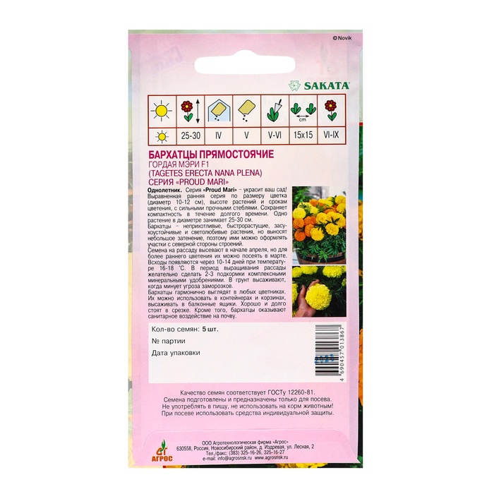 Семена Бархатцы «Гордая Мэри», F1, 5 шт., Sakata, «Агрос» — Характеристики