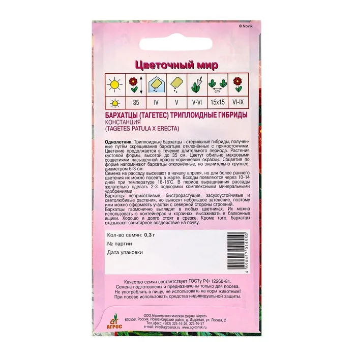Семена Бархатцы Констанция 0.3 г× — Характеристики