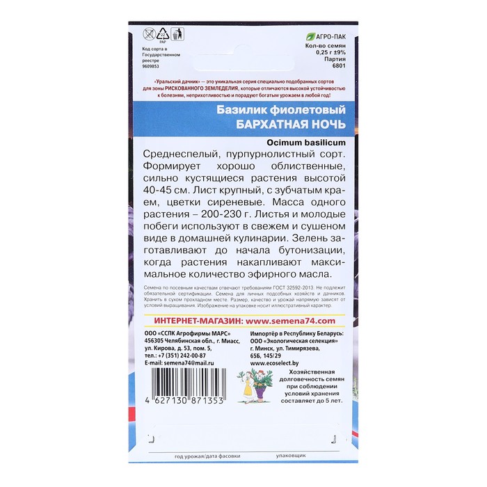 Некоторые травы имеют настолько приятный вкус и запах, что их жалко смешивать с другими пряностями. Прежде всего это относится к базилику. Бархатная ночь насыщенного фиолетового цвета, очень нежный и ароматный. Среднеранний сорт. Растение полураскидистое, хорошо облиственное, высотой 40-50 см. Листья крупные, жгуче-фиолетовые, пряные с сильным ароматом душистого перца. Масса одного растения 180-250 г. Желательно прищипнуть для лучшего кущения. Он прекрасно вырастет в квартире на солнечном окне.