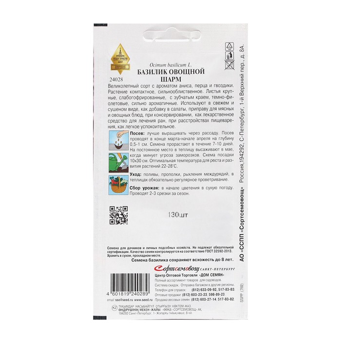 65-70 дней от всходов. Растение высотой 60-70 см, сильнооблиственное. Масса одного растения 210-320 гр. Великолепный сорт с ароматом аниса, перца и гвоздики. Растение компактное, сильнооблиственное, очень декоративное. Прекрасно смотрится на клумбах и рабатках. Листья крупные, слабогофрированные, с зубчатым краем, темно-фиолетовые , сильно ароматичные. Используют в свежем и сушеном виде, как добавку в салаты, приправу для мясных и овощных блюд, при консервировании, как лекарственное средство для лечения ран, при расстройствах пищеварения, как легкое успокоительное.