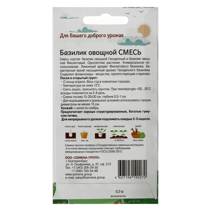 Базилик выращивают прямым посевом семян в грунт или через рассаду. В пленочной теплице или парнике базилик может давать 5-7 срезок за сезон.