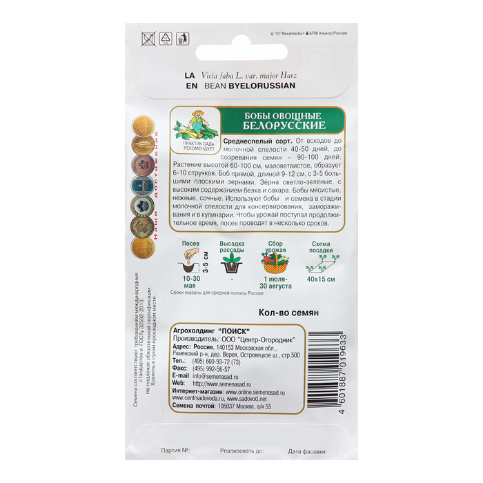 Семена Бобы овощные «Белорусские », 7 шт., «Поиск» — Характеристики