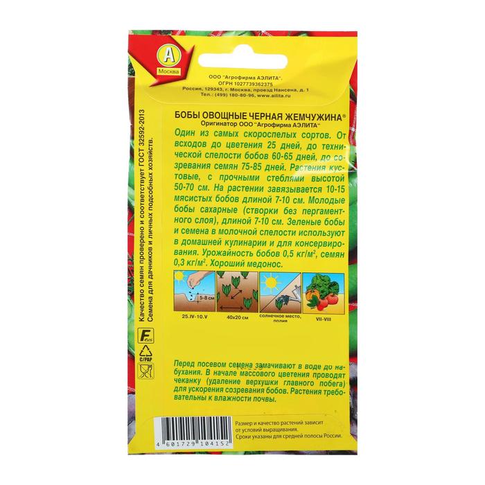 Семена овощных бобов «Чёрная жемчужина» — один из самых скороспелых сортов.
