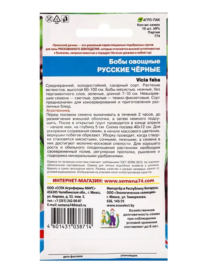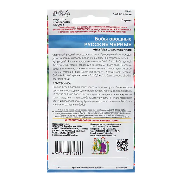 Семена Бобы "Русские черные", 6 шт — Характеристики