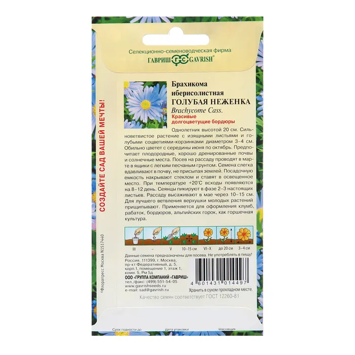 Семена Брахикома "Голубая неженка", ц/п, 0,02 г — Характеристики