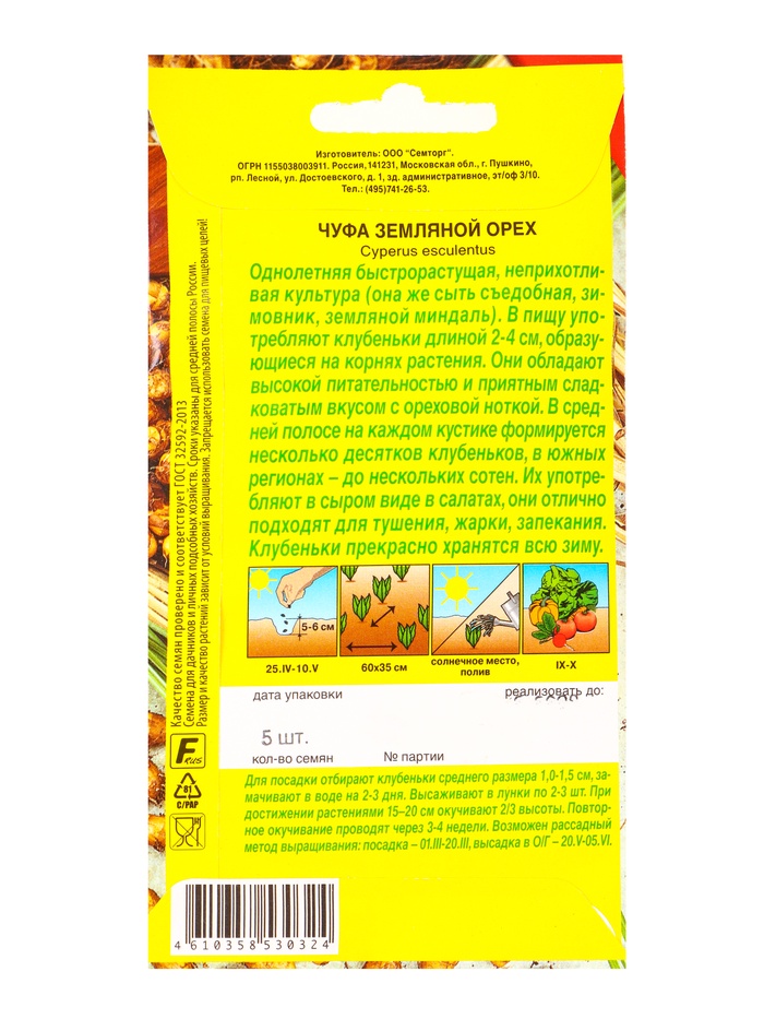Семена Чуфа «Земляной орех», «Семторг - Агрофирма АЭЛИТА», 5 шт. — Характеристики