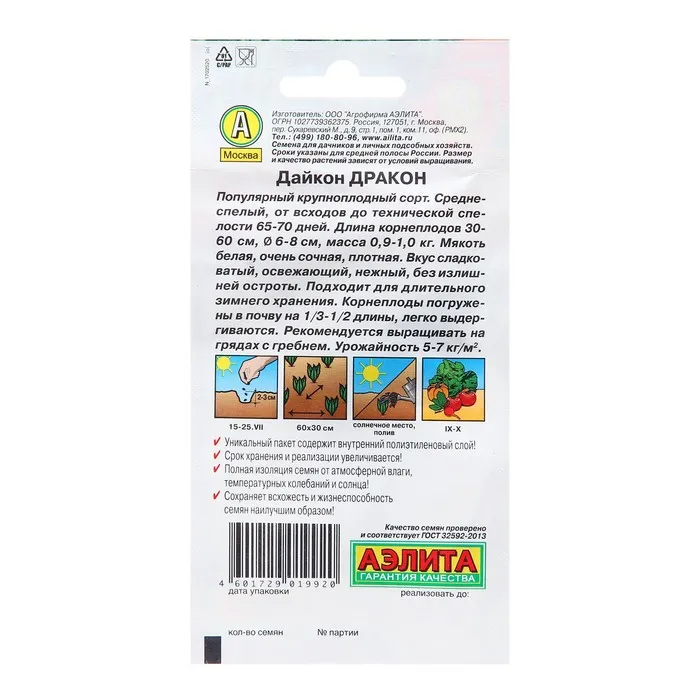 "Семя Дайкон Дракон - это сорт семян редьки, который отличается своими уникальными характеристиками и привлекательным внешним видом. Этот сорт был специально разработан для любителей овощей, которые хотят выращивать необычные и вкусные растения в своем саду или огороде.