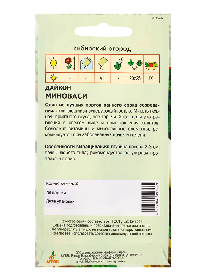 Семена Дайкон «Миноваси», 2 г, «Агрос» — Характеристики