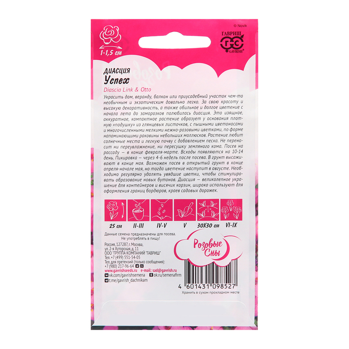 Семена Диасция «Успех», 0.01 г, «Гавриш» — Характеристики