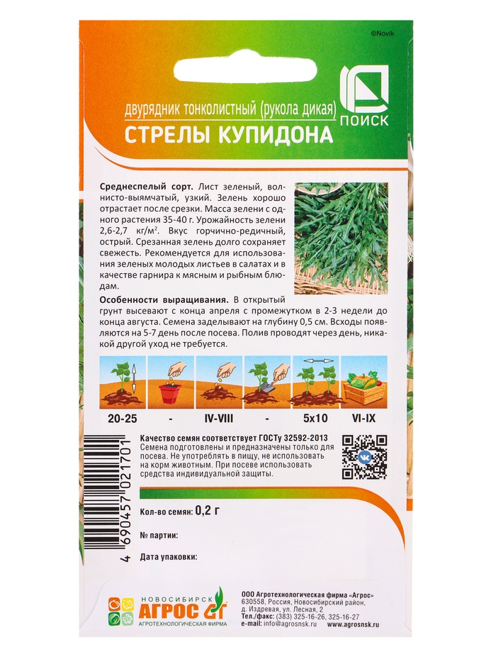 Семена Двурядник «Стрелы Купидона», 0.2 г, «Агрос» — Характеристики