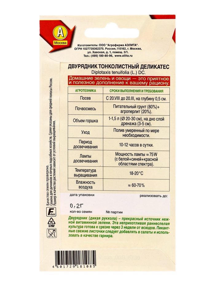 Семена Двурядник тонколистный «Деликатес», 0.2 г, «Аэлита» — Характеристики