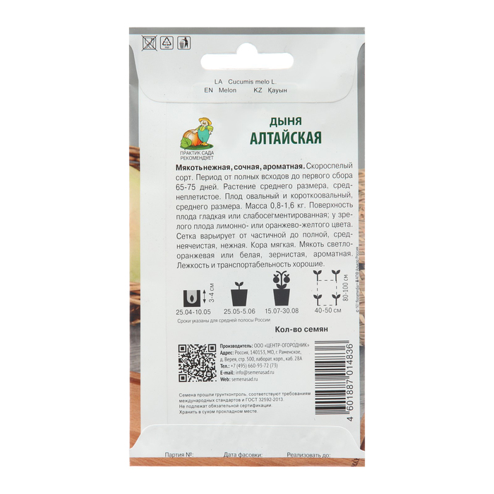 Скороспелый (63-70 дней от всходов до технической спелости) сорт сибирской селекции. Растение среднеплетистое. Плод овальный, желто-оранжевый с нежной сеткой, массой 0,8-1,6 кг. Кожица тонкая. Мякоть светло-оранжевая, зернистая, сладкая, ароматная. Достоинства сорта: неприхотлив, устойчив к перепадам температур и основным заболеваниям, хорошо приспособлен для выращивания в условиях Сибири. Посев на рассаду – в конце апреля. Высадка рассады в конце мая – начале июня в возрасте 30-35 дней. Схема посадки 40-50х80-100 см. В южных регионах выращивают врасстил в открытом грунте прямым посевом в апреле-мае. Растения подвязывают к шпалере, до высоты 50 см удаляют все боковые побеги, последующие прищипывают над 1-3 листом. Для накопления плодами сахара в период плодоношения сокращают поливы.