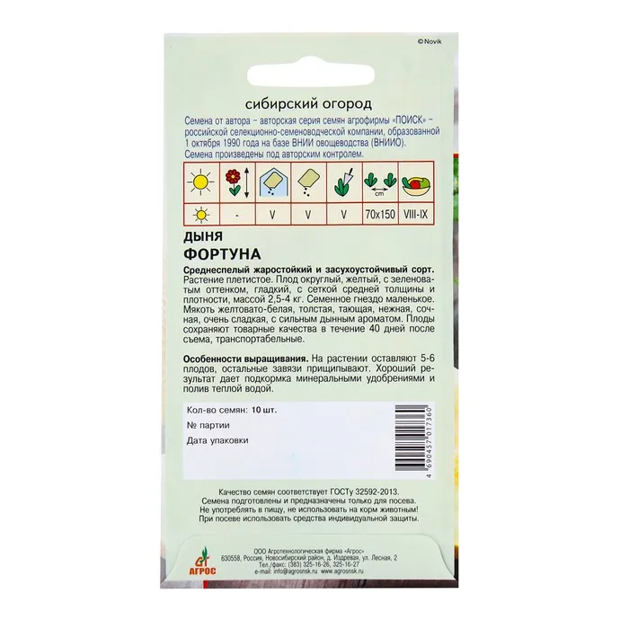 Семена Дыня"Фортуна"10шт* — Характеристики