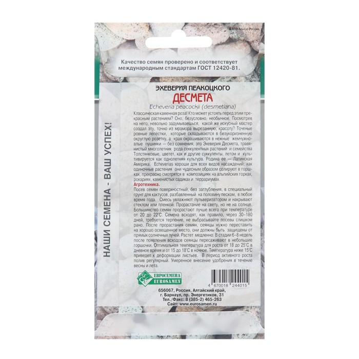 Семена эхеверия пеакоцкого «Десмета», 5 шт. — Характеристики