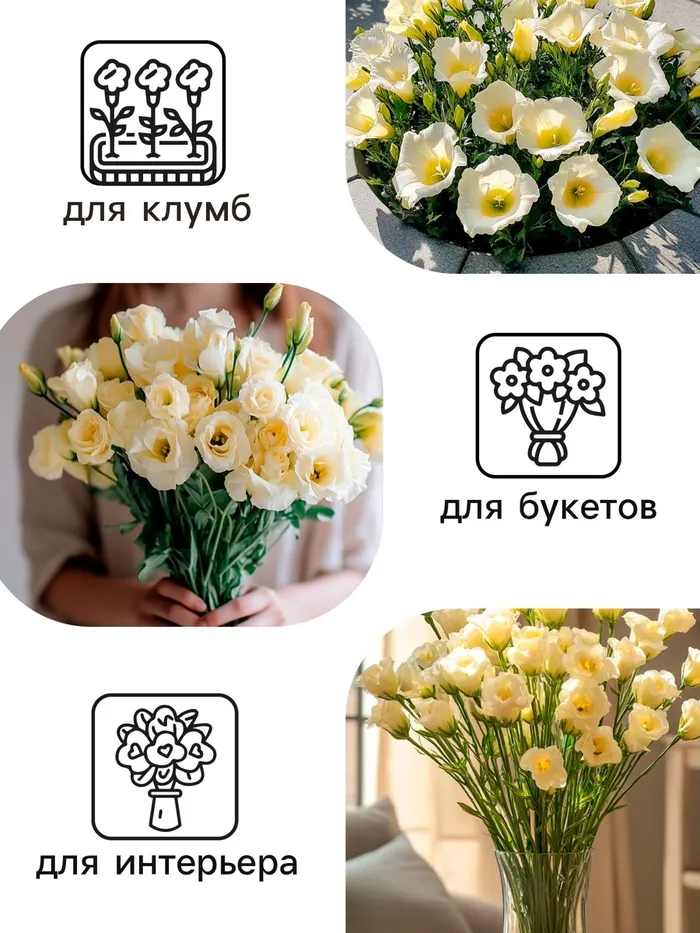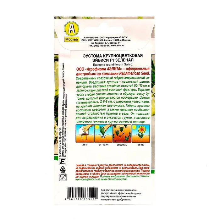 Воздушная эустома – идеальный цветок для букета. Современный срезочный гибрид американской селекции компании PanAmerican Seed – растение стройное, высотой 90-110 см, с зелено-сизой листвой восковой фактуры. Верхняя часть стебля сильно ветвится и образует массу бутонов, которые раскрываются поочередно. Цветки густомахровые, 6-8 см, с широкими лепестками, на крепких, длинных цветоносах. Гибрид эустомы восхищает красивыми цветками, а также удивляет необыкновенной стойкостью букетов в вазе. Растение подходит для выращивания в открытом грунте, в высоком пленочном тоннеле и в теп лице (круглогодично).