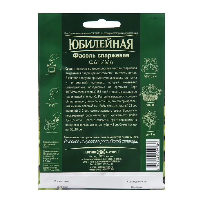 Среднеспелая (55 дней от полных всходов до технической спелости) вьющаяся спаржевая фасоль.