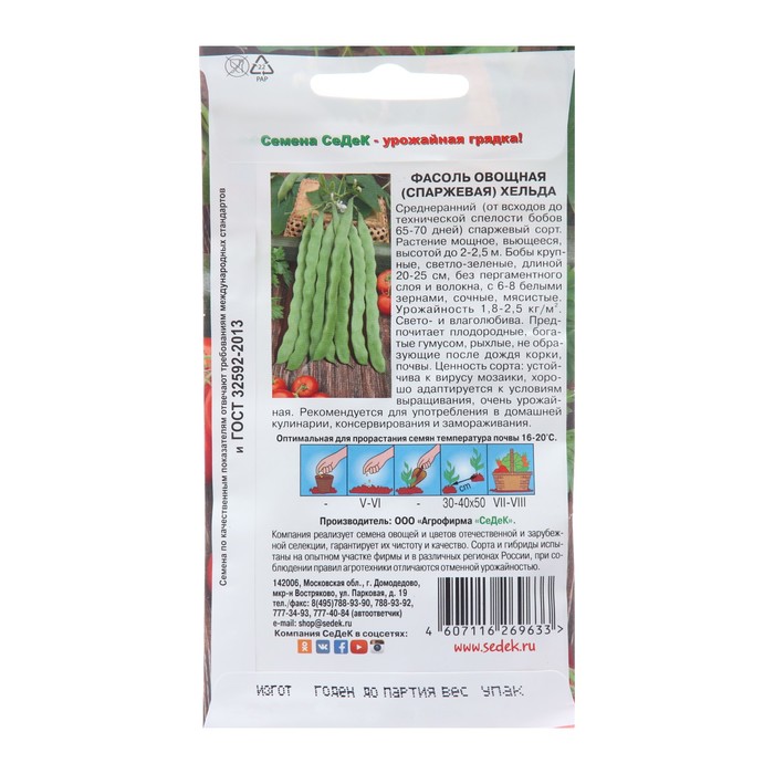 Семена Фасоль "Хельда" спаржевая, 5 г — Характеристики