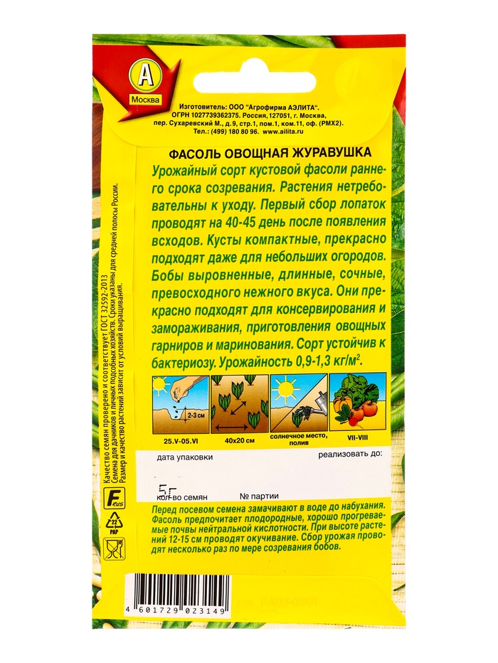 Семена Фасоль овощная Журавушка, Ц/П,5 г — Характеристики