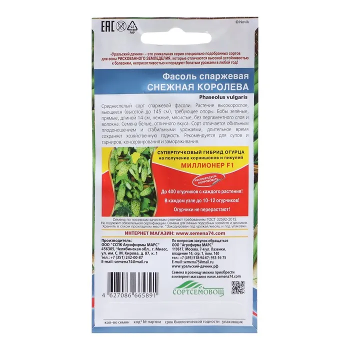 Семена Фасоль "Снежная королева", спаржевая, 10 шт — Характеристики