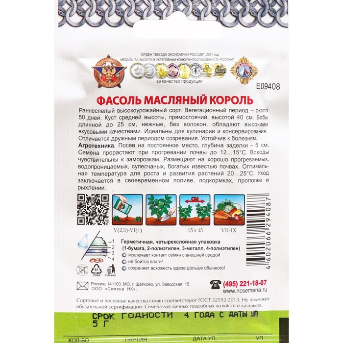 Семена Фасоль спаржевая "Масляный король", 5 г — Характеристики