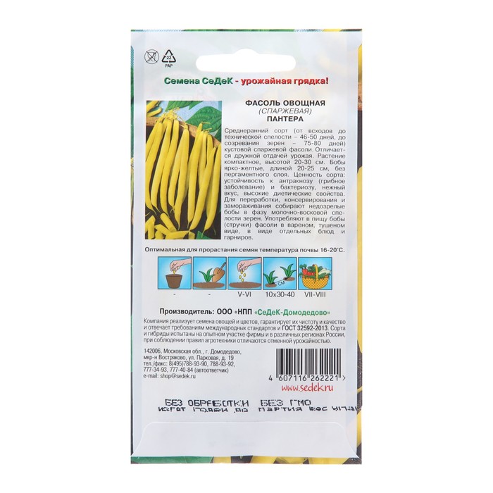 Семена Фасоль спаржевая «Пантера», 5 г — Характеристики