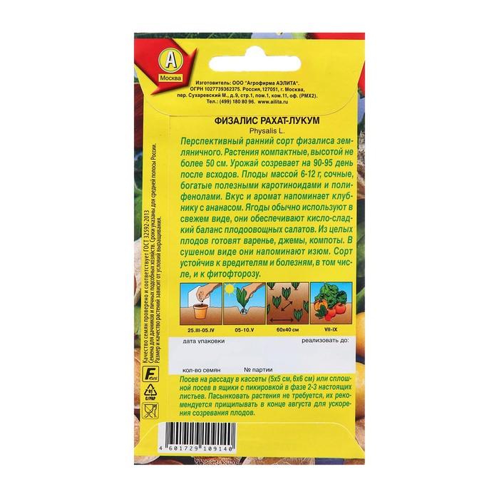 Семена Физалис Рахат-лукум ® Ц/П 0,2г — Характеристики