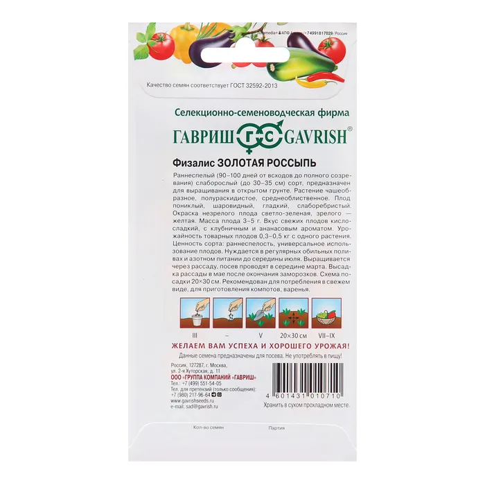 Семена Физалис "Золотая россыпь", ц/п, 20 шт — Характеристики