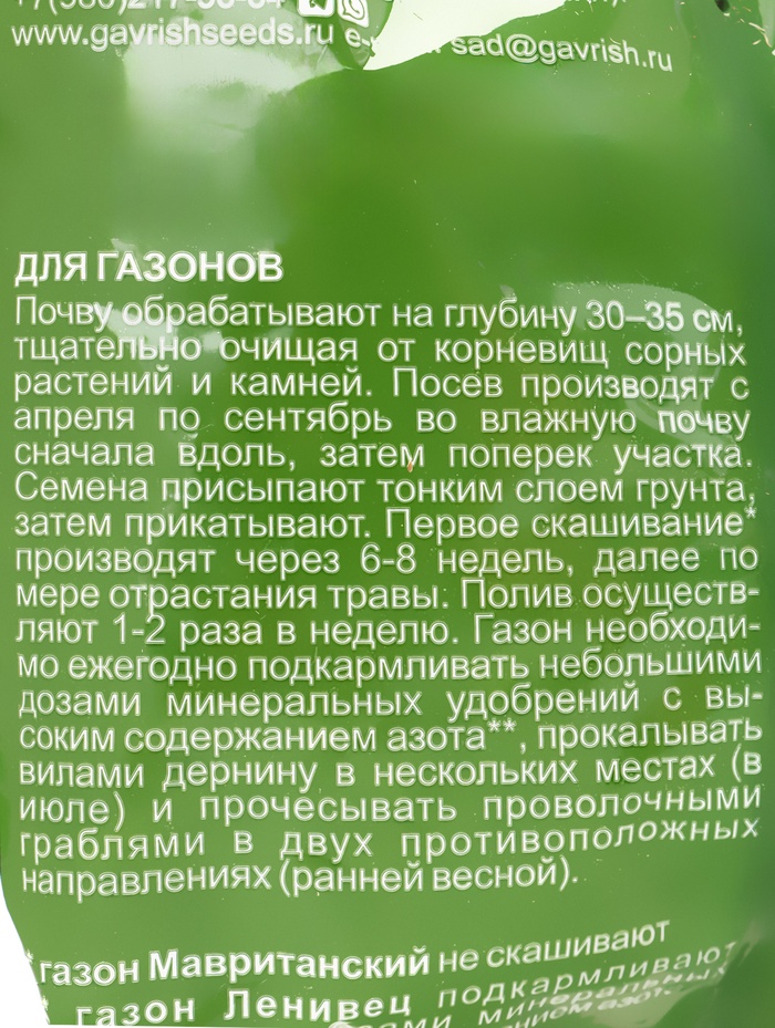 Семена Газон «Вдоль дорожки», 300 г, «Гавриш» — Характеристики