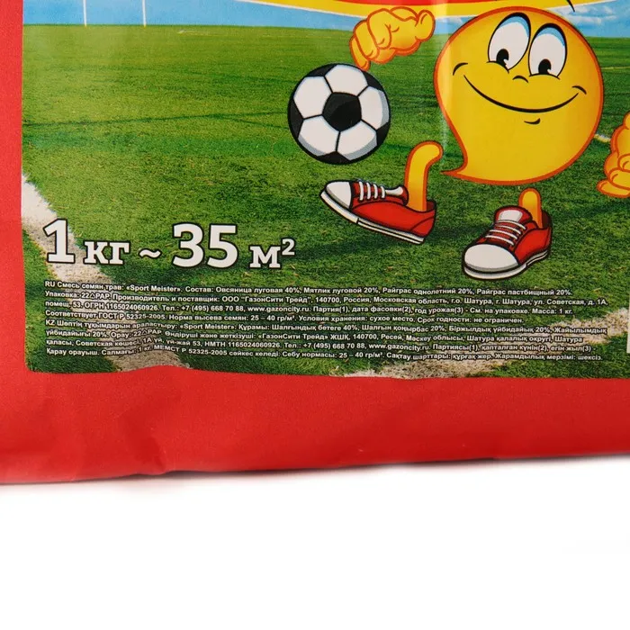 Семена газона ""Sport Meister Gras"" серии Hallo, gras! — это сочетание разных сортов трав для создания устойчивого к износу покрытия на вашем участке. Упаковки семян хватает для озеленения участка площадью 35 м2.