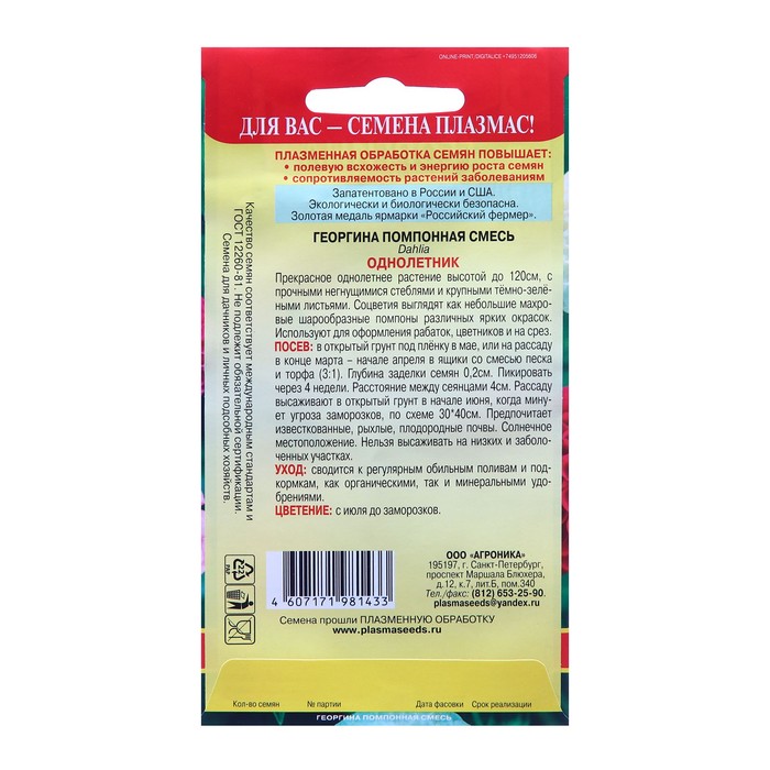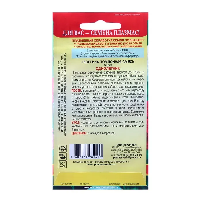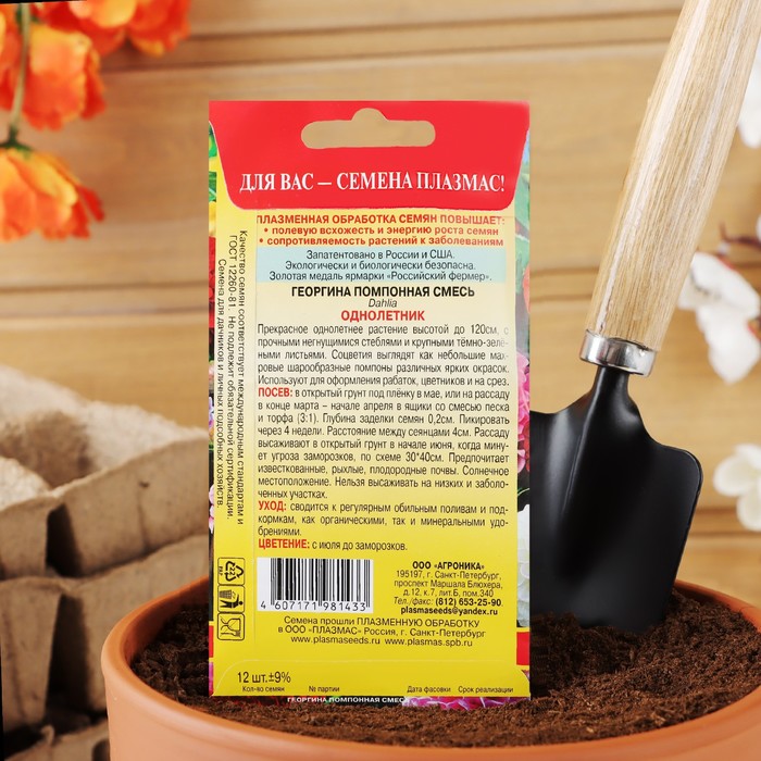 Посев. Выращивают рассадным способом с пикировкой сеянцев в фазе двух-трех настоящих листьев. Рассаду высаживают в открытый грунт, когда минует опасность заморозков. Георгина хорошо развивается на участках с богатыми, плодородными почвами. К концу вегетации образует корнеклубни, которые можно заложить на хранение и использовать для посадки в следующем сезоне. Растениям необходимы регулярные поливы, прополки, рыхления и подкормки."